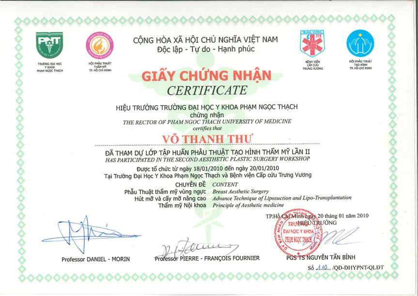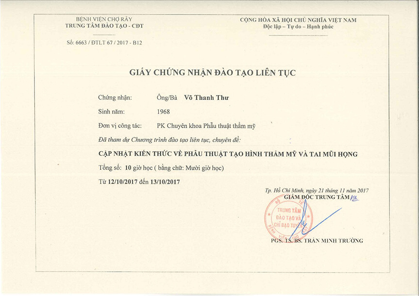 Đứng trên vai trò là bác sĩ phẫu thuât thẩm mỹ, bác sĩ Thư đã thực hiện hàng ngàn ca phẫu thuật thẩm mỹ thành công. Không chỉ nhờ chuyên môn phẫu thuật tạo hình mà còn bởi kỹ thuật và sự tinh tế khéo léo của một bác sĩ ngoại khoa xuất sắc.